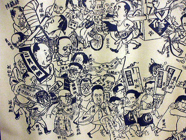 ※中国の皇帝が全国を巡回する様子、中央の皇帝に置き換えられているのは劉少奇である。先頭の陸定一が銅鑼を鳴らしながら歩き、 のちに失脚する知識人たちも風刺されている。劉少奇ら「実権派」を批判するために制作されたポスターのなかで、最も有名な作品。