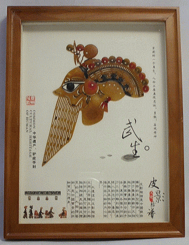 品番:PIN-09 品名:武生 額:24.5×18.5 皮影本体:約13.5×12 重さ:576g 価格:¥5.980「税込」 現品 材質:ラバ皮 額:木 ガラス 皮影 武生 中国工芸 「武生」は武将や侠客など立ち回りを主とし、動きの美しさと難しさが求められる。 「武生」には、{かっちゅう}甲冑を着た武将などに扮する「長靠武生」と優れた武芸を身につけた侠客などに扮する「短打武生」がある。