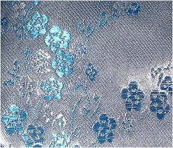 チャイナ・ブラウス 「斜襟 水青・梅柄」 サテンシルク