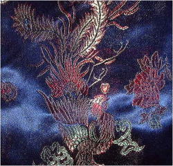 チャイナ・ブラウス 「斜襟 藍地・鳳凰柄」 サテンシルク