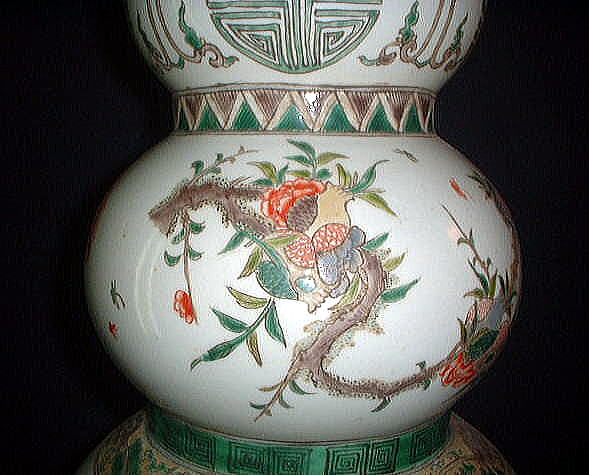 品番:HU-2 品名:闘彩吉祥花鳥文三段葫廬壺 サイズ:高53cm 径23cm 重4.5kg 価格:¥35.000「税.込」 ※景徳鎮製