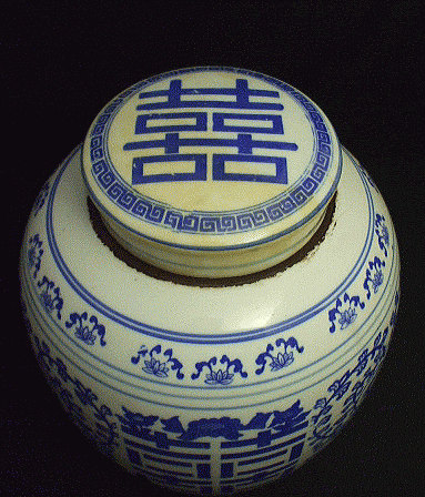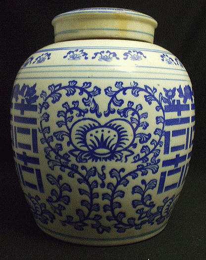 品番:03-410 品名:青花双喜蓋壺 サイズ:高23cm 径20cm 重さ1800g 価格:¥3.900「税込」 ※景徳鎮製 ※これは80年代の物ですが、色ムラ、色トビ、色ズレ、があります。ご了承の上、ご購入ください。