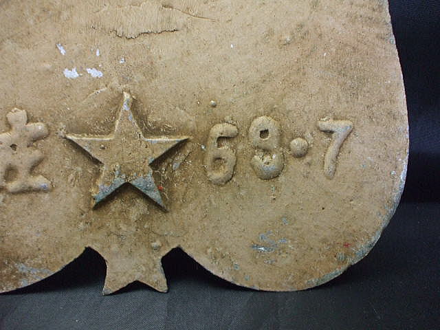 鍋、釜を持ち寄って、素人が作った溶鉱炉で作った金属のため屑鉄、この牌子もいい例、表面は毛沢東の横顔と忠誠の忠。