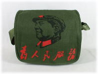 品名;人民ショルダーバック「深緑・毛沢東」 品番:B-109 材質:帆布 価格:¥1.800「税込」 サイズ:約31cmX30cmX13cm |