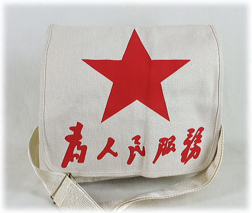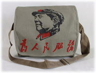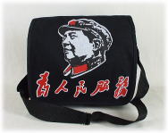 品名;人民ショルダーバック「生地・毛沢東」 品番:B-110 材質:帆布 価格:¥1.800「税込」 サイズ:約31cmX30cmX13cm |