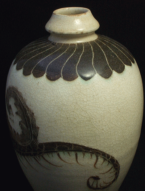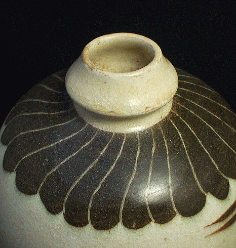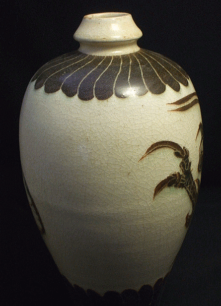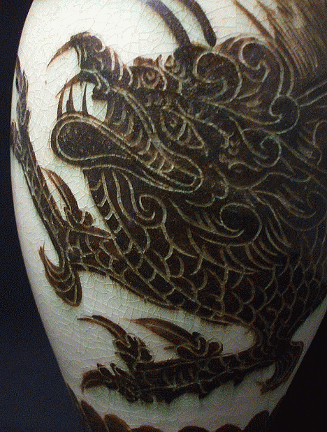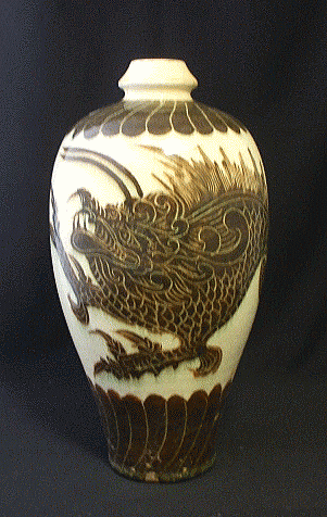 品番:NEW-2 品名:白地黒掻落し龍文瓶 (しろじくろかきおとしりゅうもんびん) サイズ:径18cm 口径4cm 高さ32cm 重さ1.6kg 価格:15.000「税込」現品限り 中国花瓶 磁州窯 工芸品