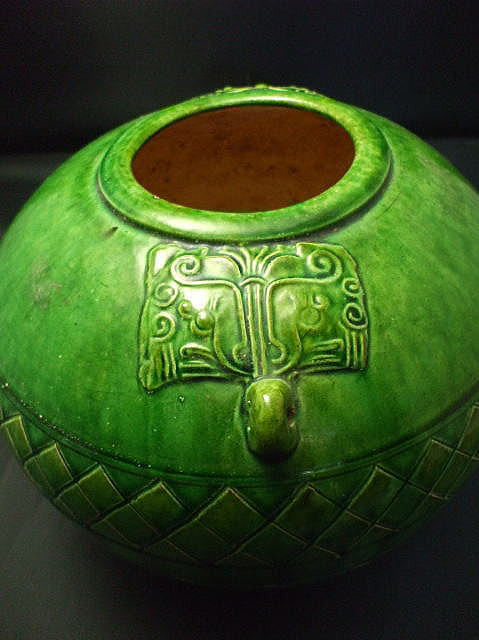 品名:緑釉獣文貼花双耳壺 品番:AH-14 素材: 陶器 約:高21cm 胴回26cmX口径8p 重2400g 価格:¥9.800「税込」現品 中国・河南省 洛陽