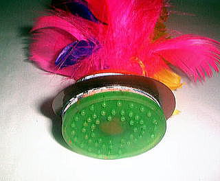 それにカラフルに染めた鳥の羽が数枚差し込まれている。そしてそれを互いに蹴り合って遊ぶ。簡単そうでやってみると難しい。