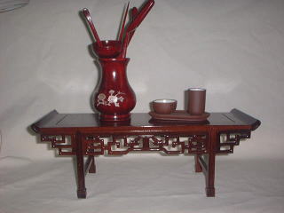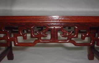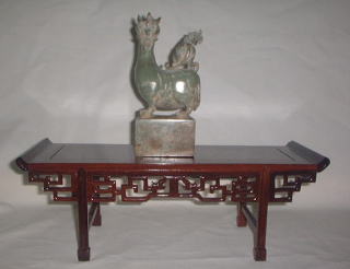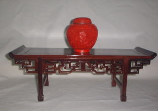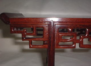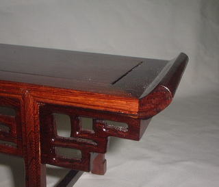 紅松材を使って作られた飾り台で、両端が少し跳ね上がった「筆返し」という形は明清代の文人等に愛されたデザインです。