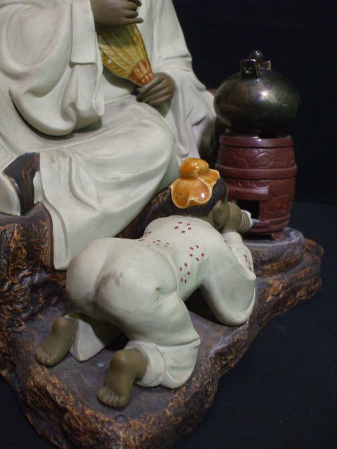 品名:陸羽像「大」 品番:D-12 サイズ約:高33cm横幅39cm奥24cm 重さ5.5kg 価格:¥35.000 「税込」 現品 ¥24.500 「税込」 中国・石湾窯「磁器」 お店の飾りに、、、。 ※陸 羽(りく う、733年 - 804年)は、唐代文筆家。茶の知識をまとめた『茶経』3巻などを著述した。 中国の茶館に飾ってあるのを、見たことがあります。