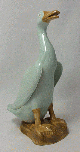品名:アヒル 品番:D-46 サイズ: 高25cm 横幅15cm 奥9cm 重:705g 価格:\8.900「税込」在庫限り 中国・清の末民の初景徳鎮金生盛製「磁器」