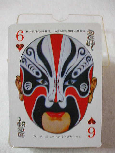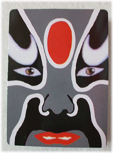 京劇の「顔譜」くま取りとは、役者が顔面に特殊な絵の具で彩色し、それをもって、キャラクターの性格、人柄、運命を表すことを指す。