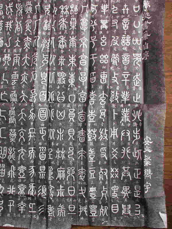 漢の許慎の著『説文解字』の部首 540字を篆書で書いたもので、その後ろに夢英の自序(373字・楷書4行)