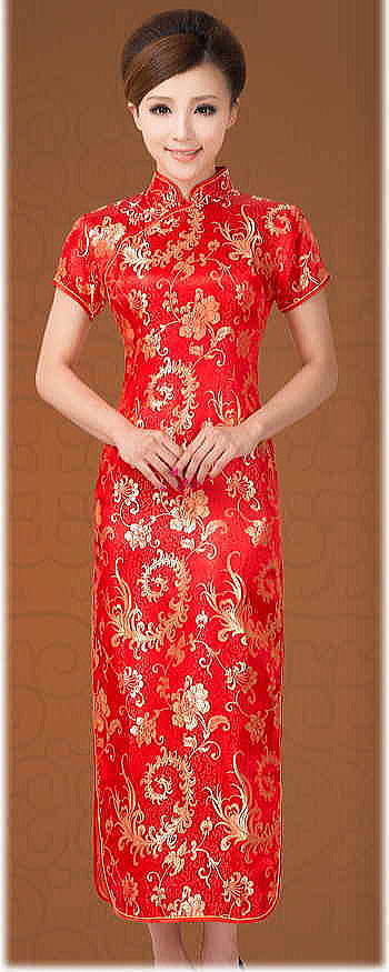 チャイナドレス:ロング 「紅・鳳凰柄」
