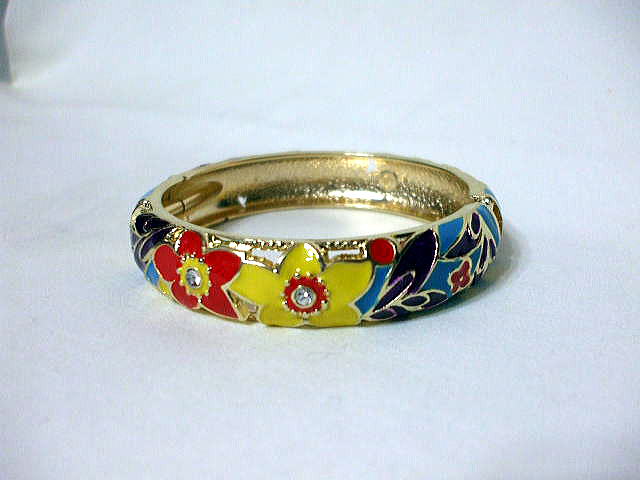 品名:景泰藍(七宝)ブレスレット 品番:AKK-07 サイズ約:外形7.3.cm 内径6cm 重さ39g 価格:¥1200「税込」 在1 ※材質 金属「七宝」 ※このブレスレットは下記の写真のように広げて手首の所から楽に入ります