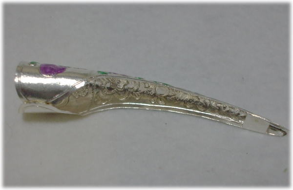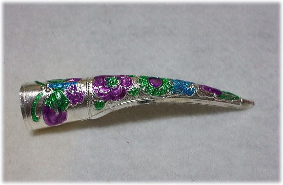※清代末期の西太后のトレードマーク、として有名だが、代々宮廷の皇后・妃・等が爪の保護の為に付けていたそうだ。資料によると、片指に3個も付けていたそうだが、皇后・妃以外は使用できない。