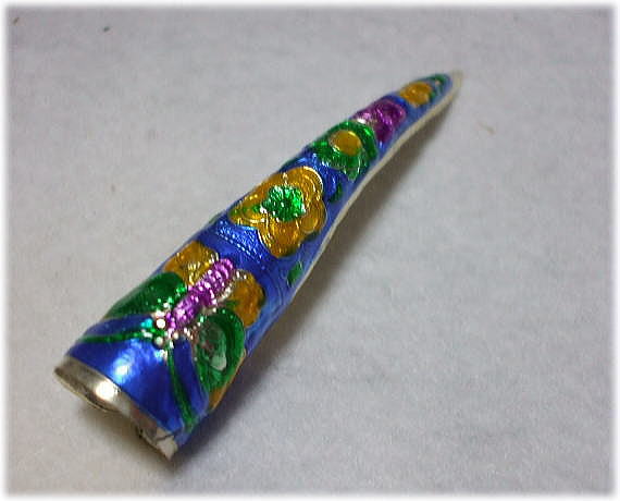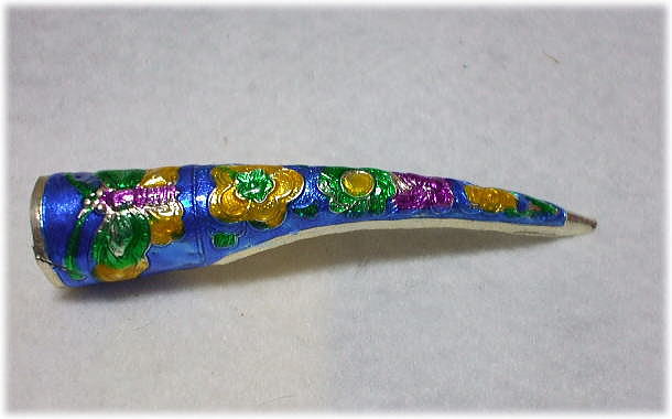 ※清代末期の西太后のトレードマーク、として有名だが、代々宮廷の皇后・妃・等が爪の保護の為に付けていたそうだ。資料によると、片指に3個も付けていたそうだが、皇后・妃以外は使用できない。