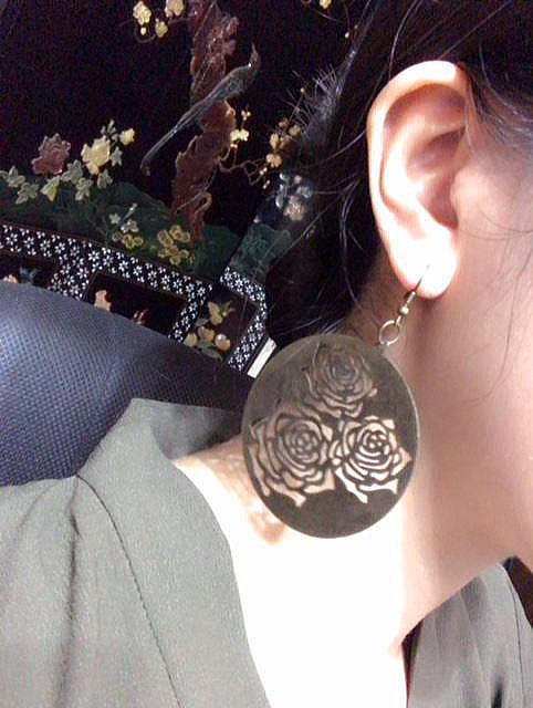 品名:民族風ピアス 品番:AK-15 サイズ:長:約8cm 幅約5.7cm 価格:¥480 「税込」 ※材質 金属 長さ:ピアスの器具の曲がっている所から下まで約8cm 幅約 5.7cm 重さ5g「1枚」