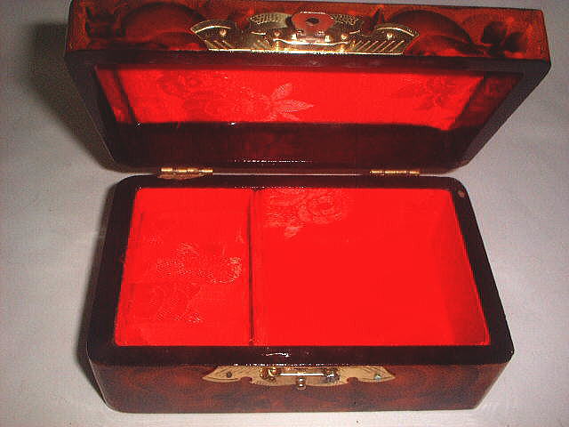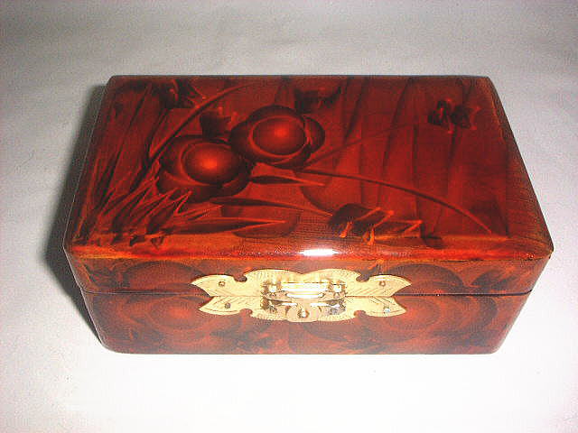 漆塗り・宝石箱「小」 この宝石箱は開放政策が強力に進められ、外貨獲得の為、25.6年前作られたもので、現在の北京・上海で探すのは難しい。 中国伝統の作りで、現在の中国の宝石箱は欧米化され、特徴がない。