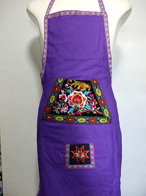 品名:民族エプロン(囲裙) 品番:GU-16 サイズ:縦80cmX横54cm 材質: 綿「刺繍入」 刺繍の所ポケットになってます 価格: ¥1.200「税込」 産地:中国