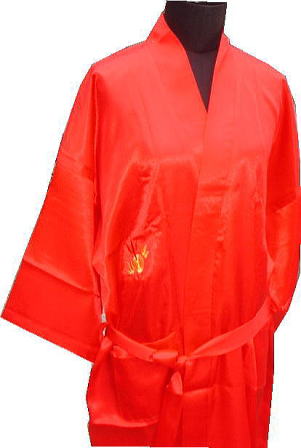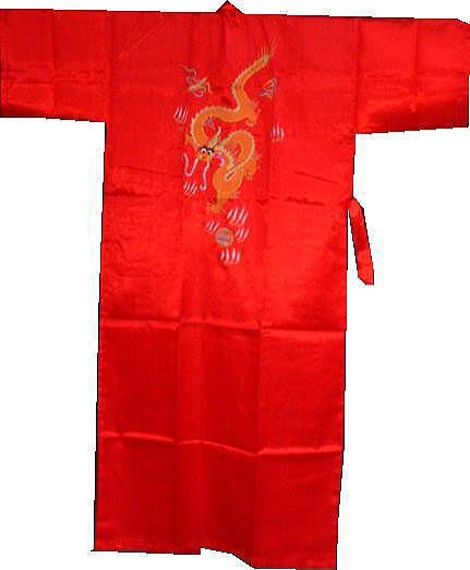 ※前にポケットが二つ、刺繍は前に火炎が二つ、後に大きな龍と火炎。刺繍は中国ならではの、見ごたえがありますが、裏地がありませんので、刺繍の工程がそっくり見えます。