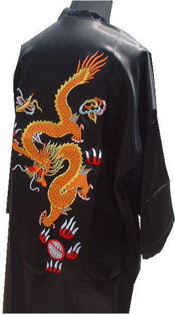 ※前にポケットが二つ、刺繍は前に火炎が二つ、後に大きな龍と火炎。刺繍は中国ならではの、見ごたえがありますが、裏地がありませんので、刺繍の工程がそっくり見えます。