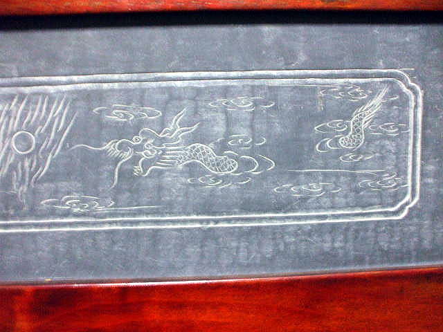 ※石の表面に九龍が彫られ、裏面にが絵が彫られている、枠はしっかりとした木製。