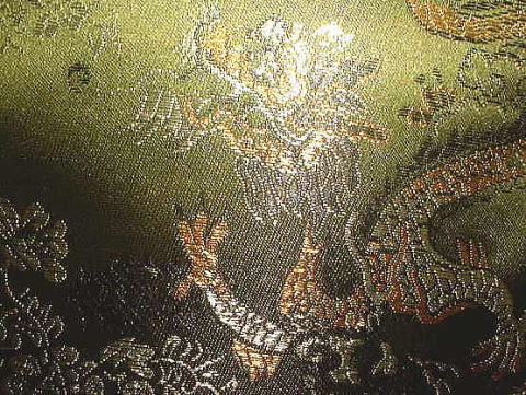 緑 龍鳳凰花柄 開口部はファスナーで、持ち手は天然竹を仕様。 取っ手を入れると 40cm