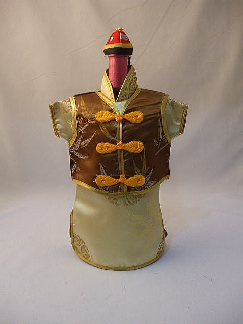 ワインボトルカバー 「チャイナ服風」 中国雑貨 品名:ボトルカバー 品番:TEE-50 サイズ:28cmX20cm 男性チャイナ服デザイン 素材:サテン地 価格:¥980(税込) 現品限 ★パオ「長袍(チャンパオ」は龍と五福柄 ベスト 帽子の色柄は変わります ※写真と実際の色が、パソコンの違いにより、異なる場合があります、ご了承ください。