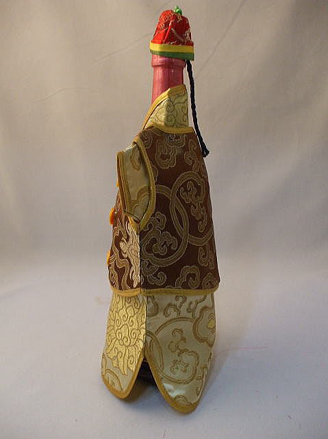 ワインボトルカバー 「チャイナ服風」 中国雑貨 品名:ボトルカバー 品番:TEE-53 サイズ:28cmX20cm 男性チャイナ服デザイン 素材:サテン地 価格:¥980(税込) 在3 ★パオ「長袍(チャンパオ」は唐草模様と宝相華(ほうそうげ)柄 ベスト 帽子の色柄は変わります ※写真と実際の色が、パソコンの違いにより、異なる場合があります、ご了承ください。