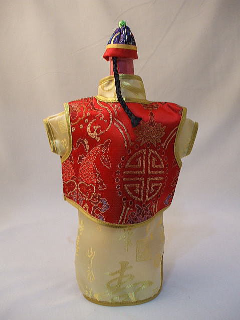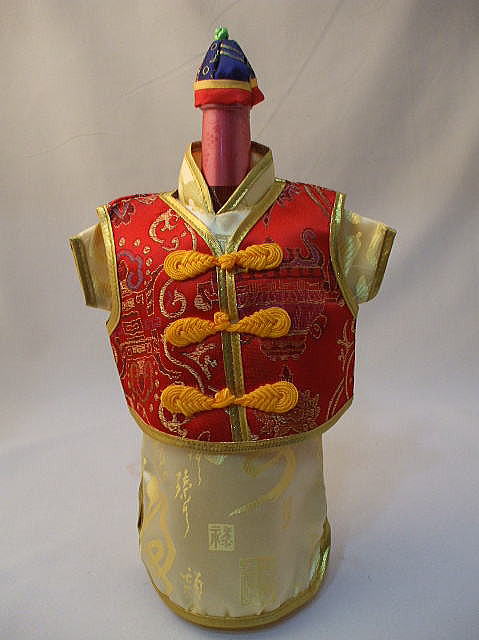 ワインボトルカバー 「チャイナ服風」 中国雑貨 品名:ボトルカバー 品番:TEE-58 サイズ:28cmX20cm 男性チャイナ服デザイン 素材:サテン地 価格:¥980(税込) 在3 ★パオ「長袍(チャンパオ」は漢字柄 ベスト 帽子の色柄は変わります ※写真と実際の色が、パソコンの違いにより、異なる場合があります、ご了承ください。