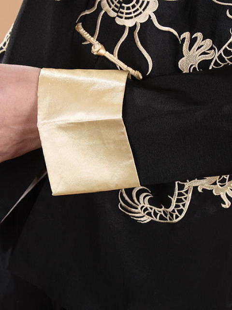品名: 長袖チャイナ服 [黄金双龍刺繍・黒」