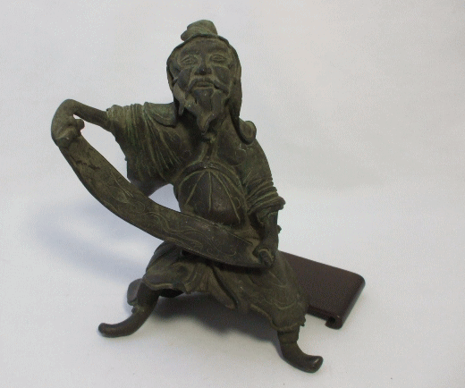 品名:青銅器 将軍置物 品番:02-133 サイズ:横幅17cm 奥幅14cm 高さ20cm 重1500g 価格:¥10.000「税込」現品限り ※新しいものではありません。 置くには後ろ何にか寄りかかるが、台の上には大丈夫です。これは台付きです。