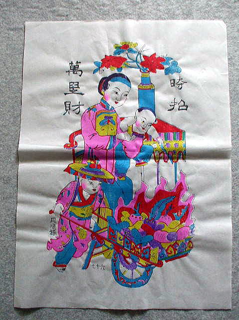 品名:年画 「広招萬里財」 財 品番:NEN-126 サイズ:縦48cmX横34cm「紙」 サイズ:縦36cmX横25cm「版画部分」 材質:宣紙 価格: ¥480「税込」 在庫5枚 産地:中国・山東