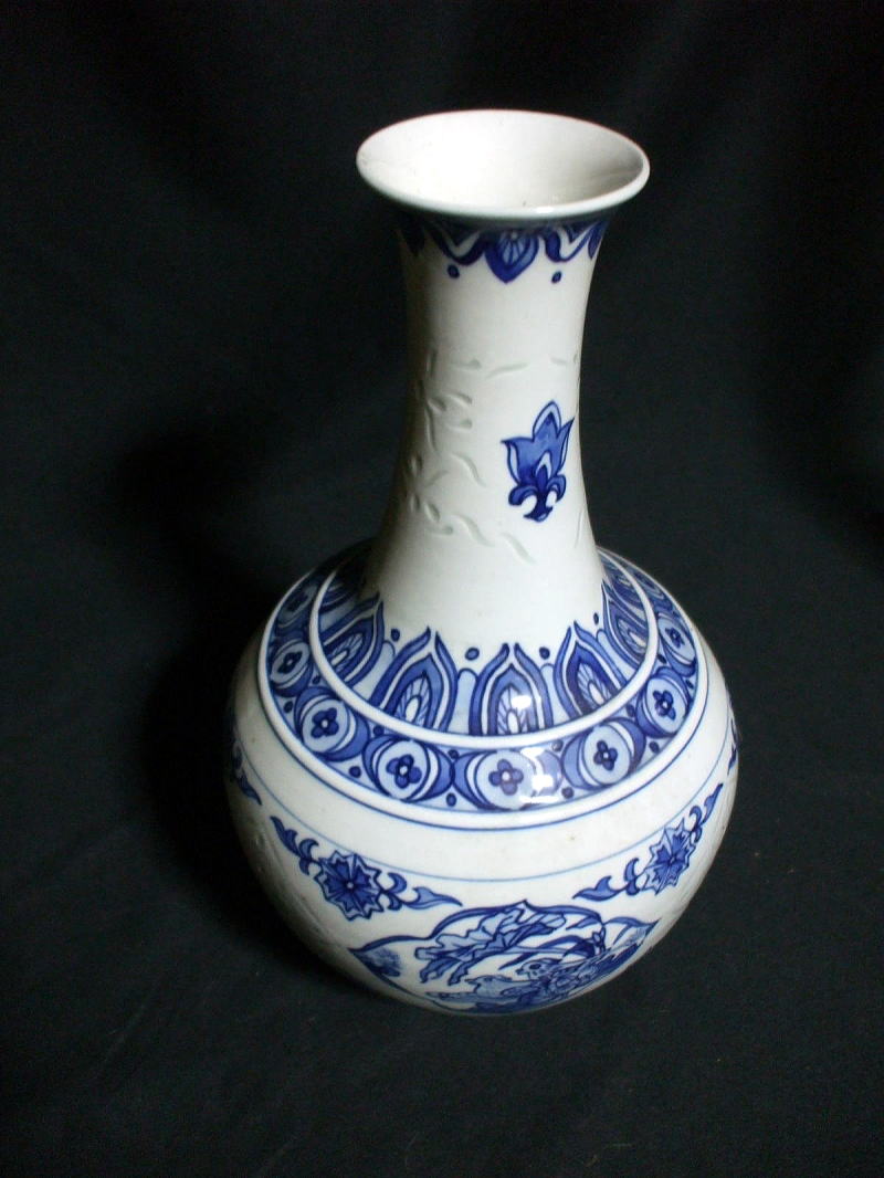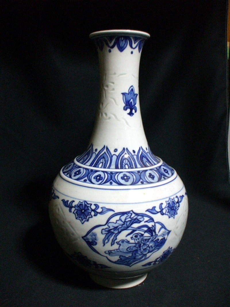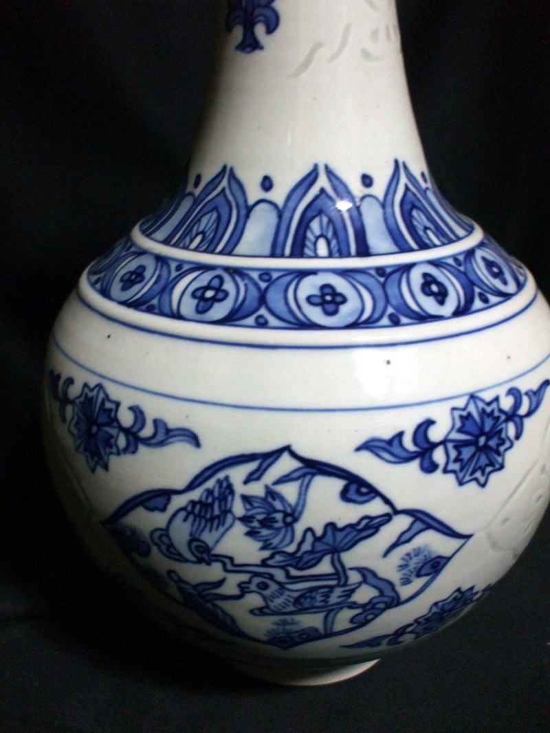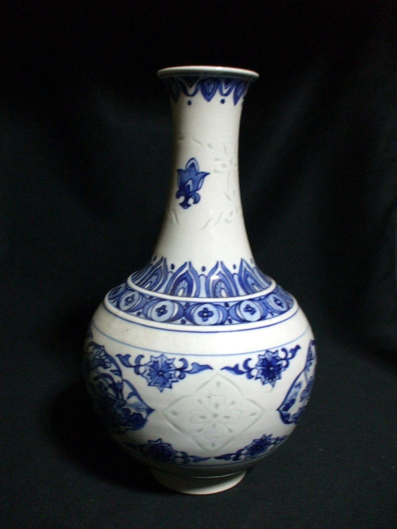 更に青花装飾を加え、釉薬をかけてから、高温で一度に焼き上げる。