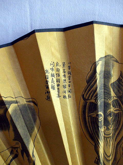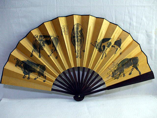 ある晴れた日、韓滉は農村の小道を歩いていると、何頭かの耕作用の牛が草を食べています。遠い所では一頭の牛が駆け、別の牛は舌をなめ、ある牛は頭を下げて草を探しています。韓滉はそれを見ていると、急いで、筆を取り出してスケッチをします。1ヶ月以上の修正を経て、ついに様子の異なった5牛を描きだします。1頭は頭を下げて草を食べ、1頭は前へ疾走し、1頭は振りかえって舌をなめ、別の1頭は仲間を呼びかけるようです。 韓滉はこの絵に満足して、《五牛図》と名を付けました。