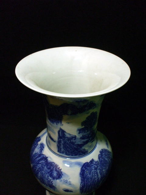 青花山水凰尾瓶 中国陶磁器 ★底に二重丸の中に大清雍正年製と六文字ありますが、もちろん倣古品です。