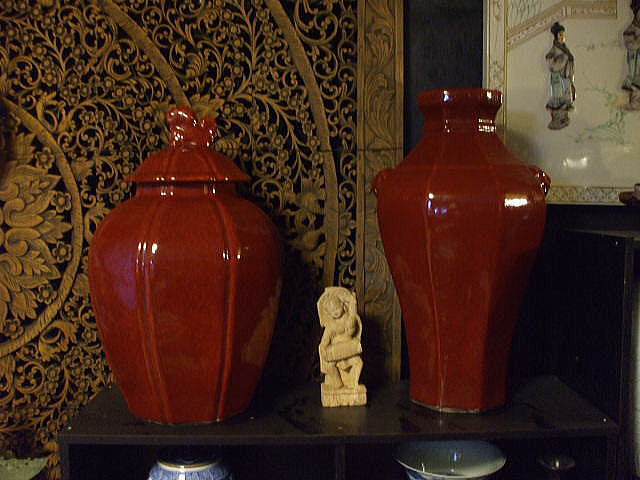 品名:祭紅釉八角双耳壺 品番:SON-26 サイズ約:口径15cm 高55cm 最大径33cm 重8.2kg 価格:¥65.000「税込」現品限 中国・景徳鎮製